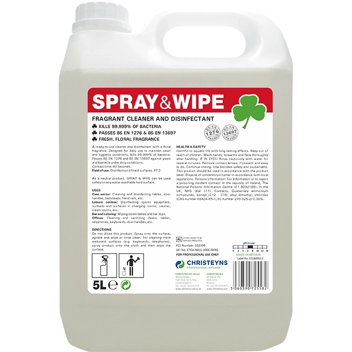 Fragranced Bactericidal CleanerKILLS MRSAA ready-to-use cleaner and disinfectant with a floral fragrance. Designed for daily use to maintain clean and hygienic conditions.Kills 99.999% of bacteria. Tested to BS EN 1276 undiluted.Ideal for cleaning bathrooms, mirrors, furniture, doors, walls, sunbeds, sport equipment, bars, tables, fixtures and fittings and all water washable surfaces.
